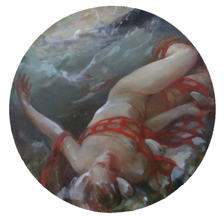 Julie Gearan: Entangled Tondo, oil on canvas, 12"x12"