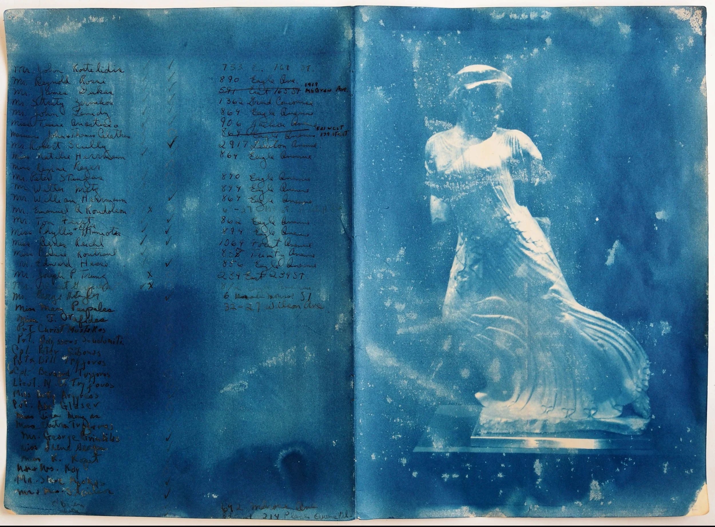 The fleeing maiden from Eleusis, on a ledger of Greeks living in the vicinity of Eagle Avenue in the Bronx