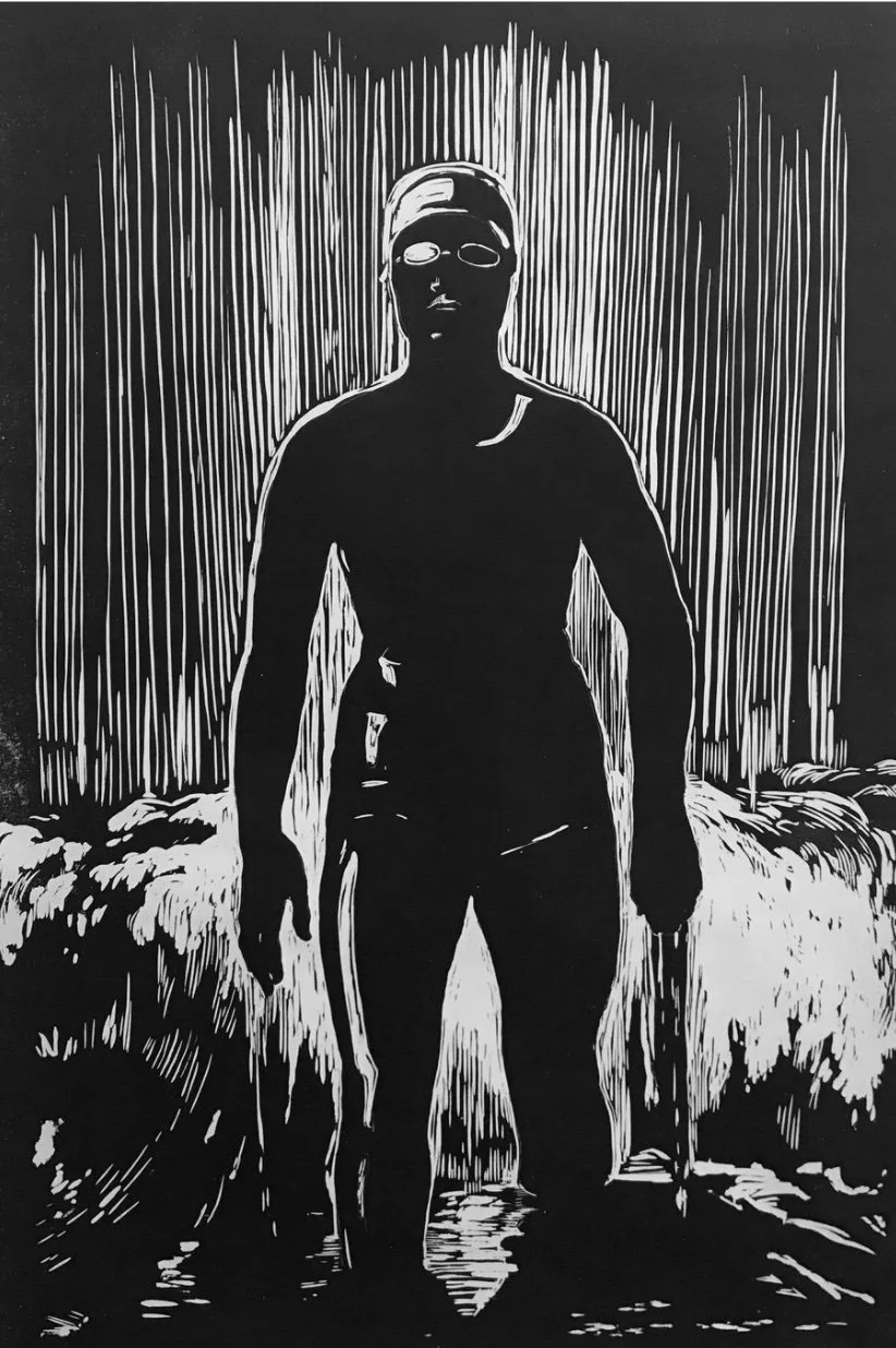 She Emerges Victorious, 30"X44", woodcut